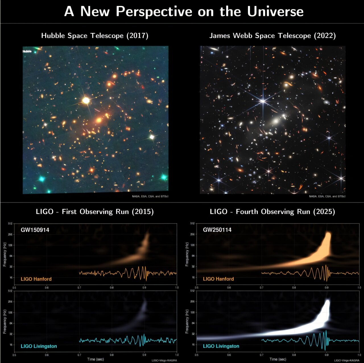 Amit Singh Ubhi, thành viên nhóm thiết bị tại Birmingham, người đóng góp phần cứng then chốt cho phát hiện này, cho biết: “Tỷ lệ tín hiệu trên nhiễu vượt trội của GW250114 thể hiện sự tiến bộ vượt bậc trong công nghệ dò sóng hấp dẫn của cộng đồng khoa học. Độ rõ chưa từng có này cho phép chúng ta nghiên cứu quá trình tiến hóa của lỗ đen với độ chính xác hơn bao giờ hết, thể hiện vai trò của công nghệ tiên tiến đối với hiểu biết của con người về các định luật cơ bản của tự nhiên.”