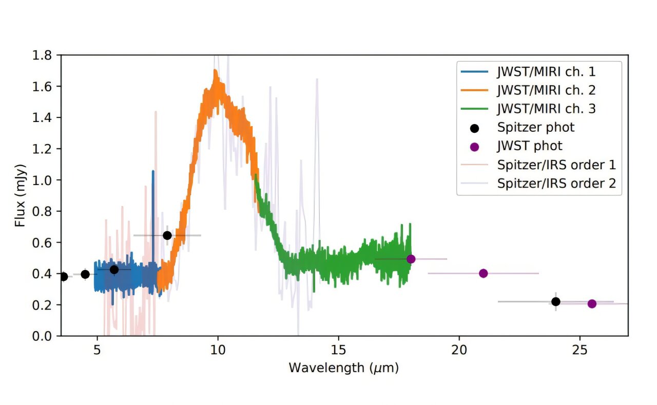 Độ phân giải quang phổ và độ nhạy cao của hai thiết bị này đã cho phép nhóm nghiên cứu đo đạc được thành phần của vật chất rắn có nguồn gốc từ hành tinh quanh GD 362. Phổ trung hồng ngoại cho thấy đặc trưng silicat rất mạnh ở dải bước sóng 9-11 µm, có độ sáng gấp ba lần so với phần nền liên tục bên dưới, kéo dài tới ít nhất 2 µm, cho thấy sự hiện diện của mảnh vụn nóng (khoảng 950 K) nằm gần sao lùn trắng.