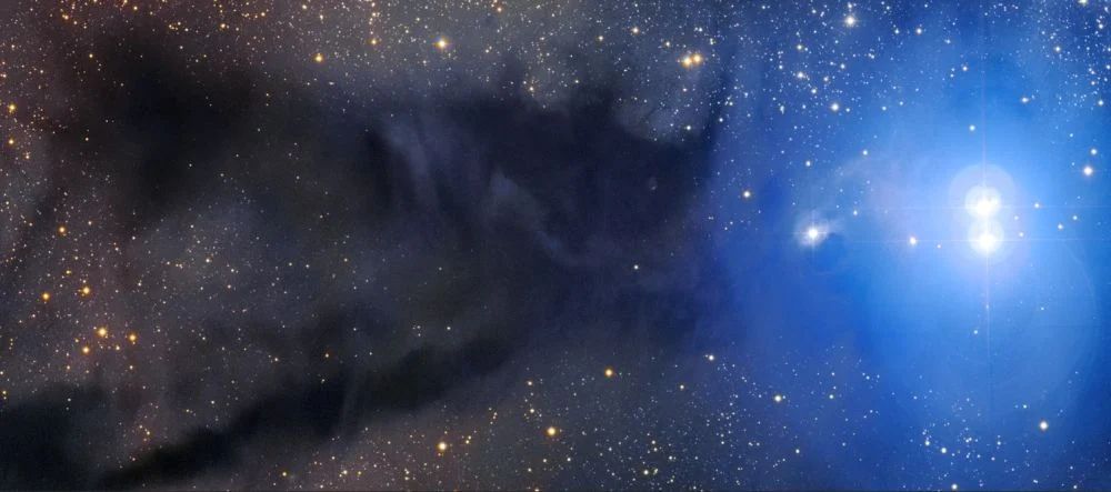 Hình ảnh phóng to này làm nổi bật cặp sao trẻ tạo ra tinh vân, cùng với một phần lớp bụi dày đặc cấu thành nên Lupus 3. Nguồn: ESO/R. Colombari