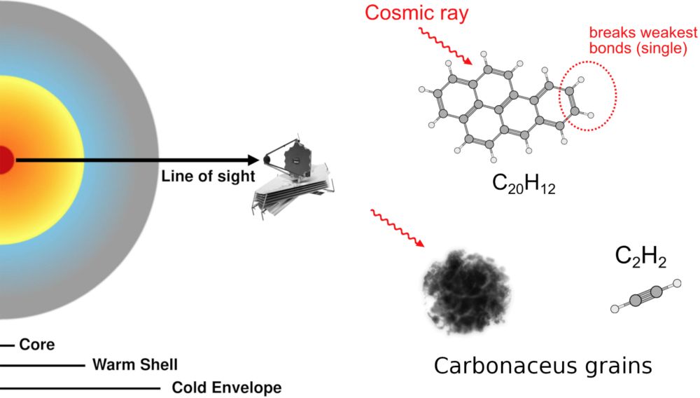 Thay vào đó, các kết quả chỉ ra rằng các tia vũ trụ - phổ biến trong những nhân thiên hà cực đoan này - làm phân mảnh các PAH và các hạt bụi giàu carbon, giải phóng các phân tử hữu cơ nhỏ vào pha khí.
